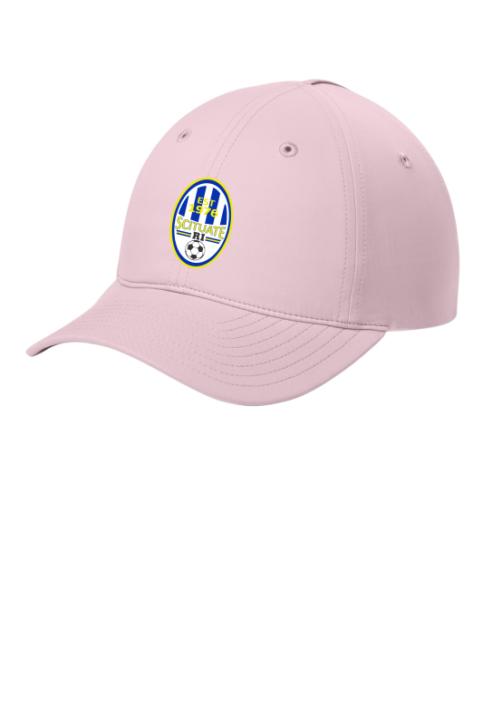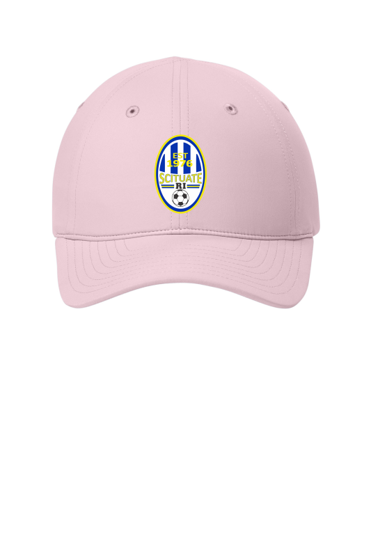 100% polyester Moisture-wicking UPF rating of 50 Stretch sweatband Unstructured Low-profile Curved bill Unique hidden split back opening allows cap to be worn with or without a ponytail Low-profile hook and loop closure